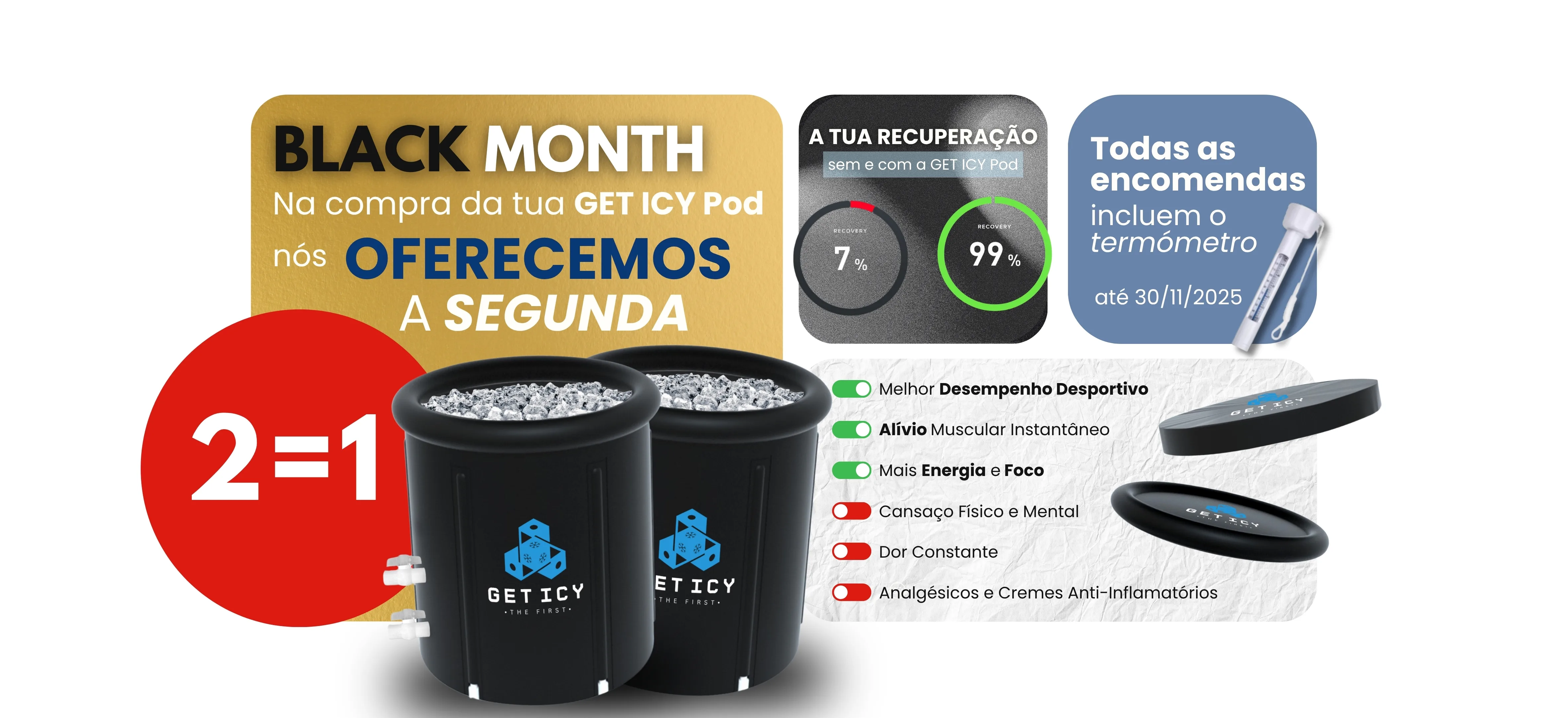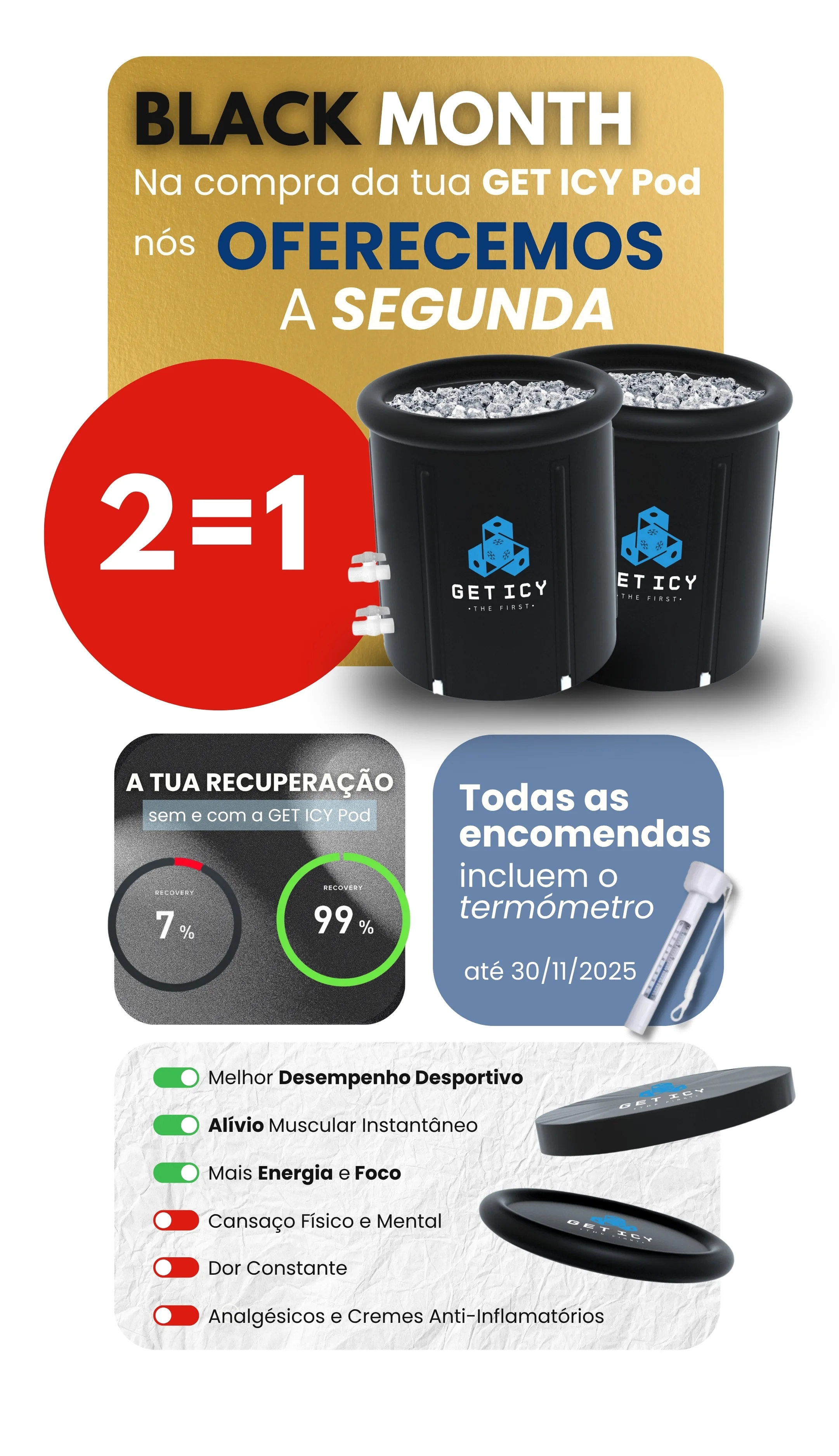 A GET ICY Pod foi criada para pessoas exigentes: resistente, portátil e construída com materiais premium. Pronta para te acompanhar no treino e no teu bem-estar, em casa ou onde precisares de recuperar.